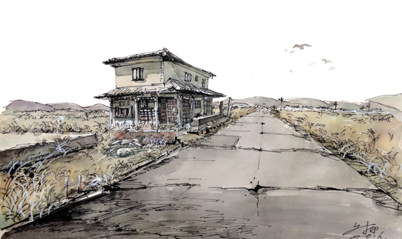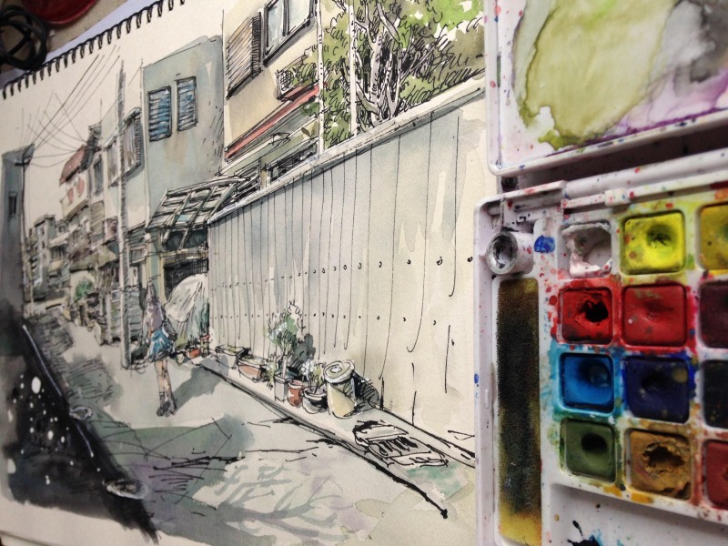 我比較喜歡用素描紙畫鋼筆淡彩,素描紙本身就是有些發(fā)黃發(fā)灰的,而且比較喜歡光滑沒有紋理的紙張。