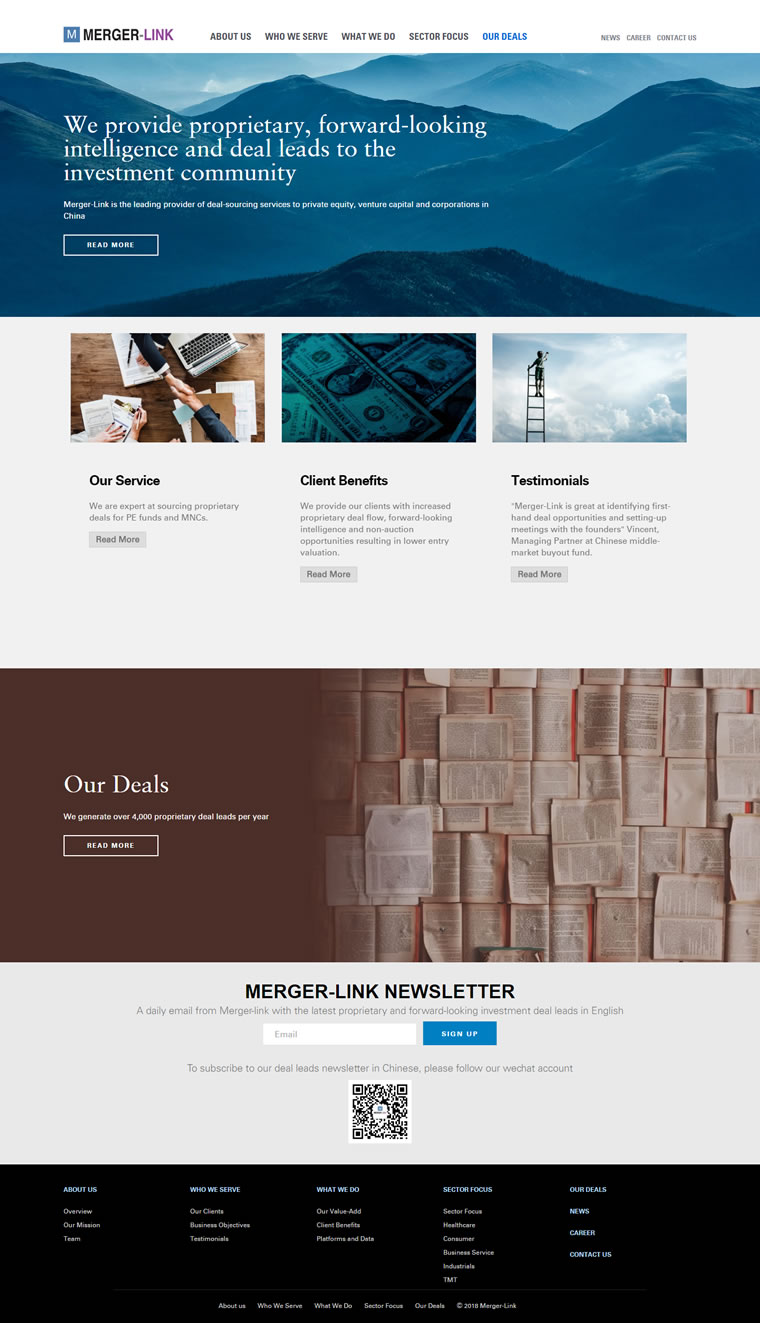 Merger-link公司主要關注中國境內的大消費,醫(yī)療,和高端制造行業(yè),并且交易金額大于3000萬人民幣(500萬美金)以上的股權融資或并購事件